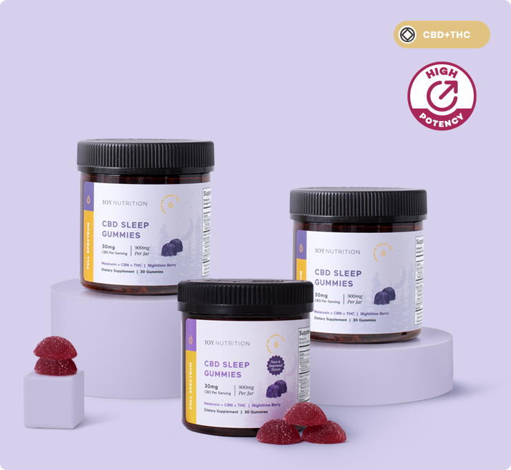 Our Sleep Gummies are made to support relaxation and restful sleep. They combine full spectrum CBD, a small amount of Delta 9 THC, and melatonin to help you unwind at night and wake up feeling refreshed.